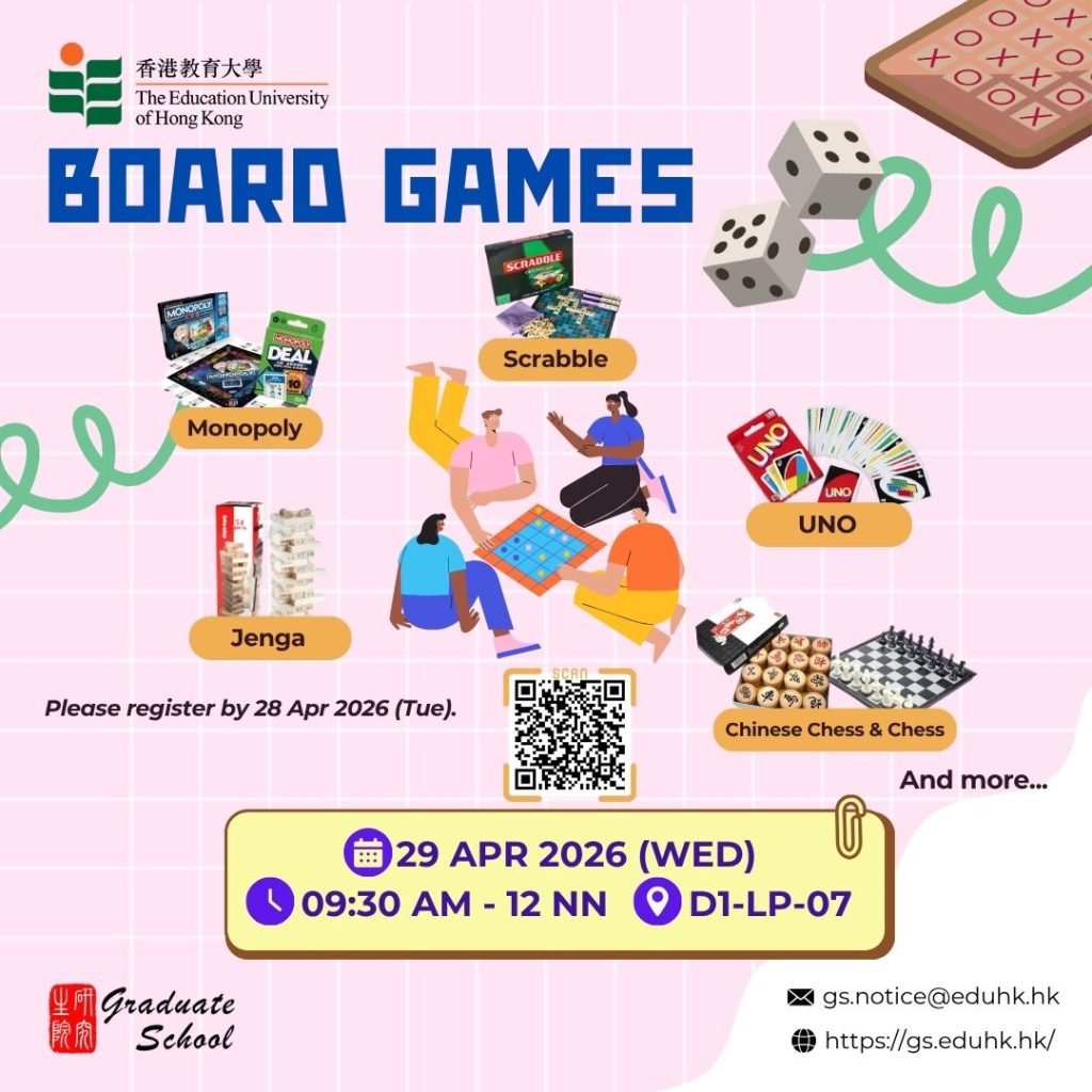 The Graduate School (GS) held the fourth Brown Bag Lunch of the 2025/26 academic year on 25 March 2026. The session was co-hosted by Dr Lucas Kohnke, Acting RPg Programme Leader, and Ms Melanie Tang, Counsellor of the Graduate School. In a relaxed and informal atmosphere, nine first-year doctoral students from various departments gathered to … Continued