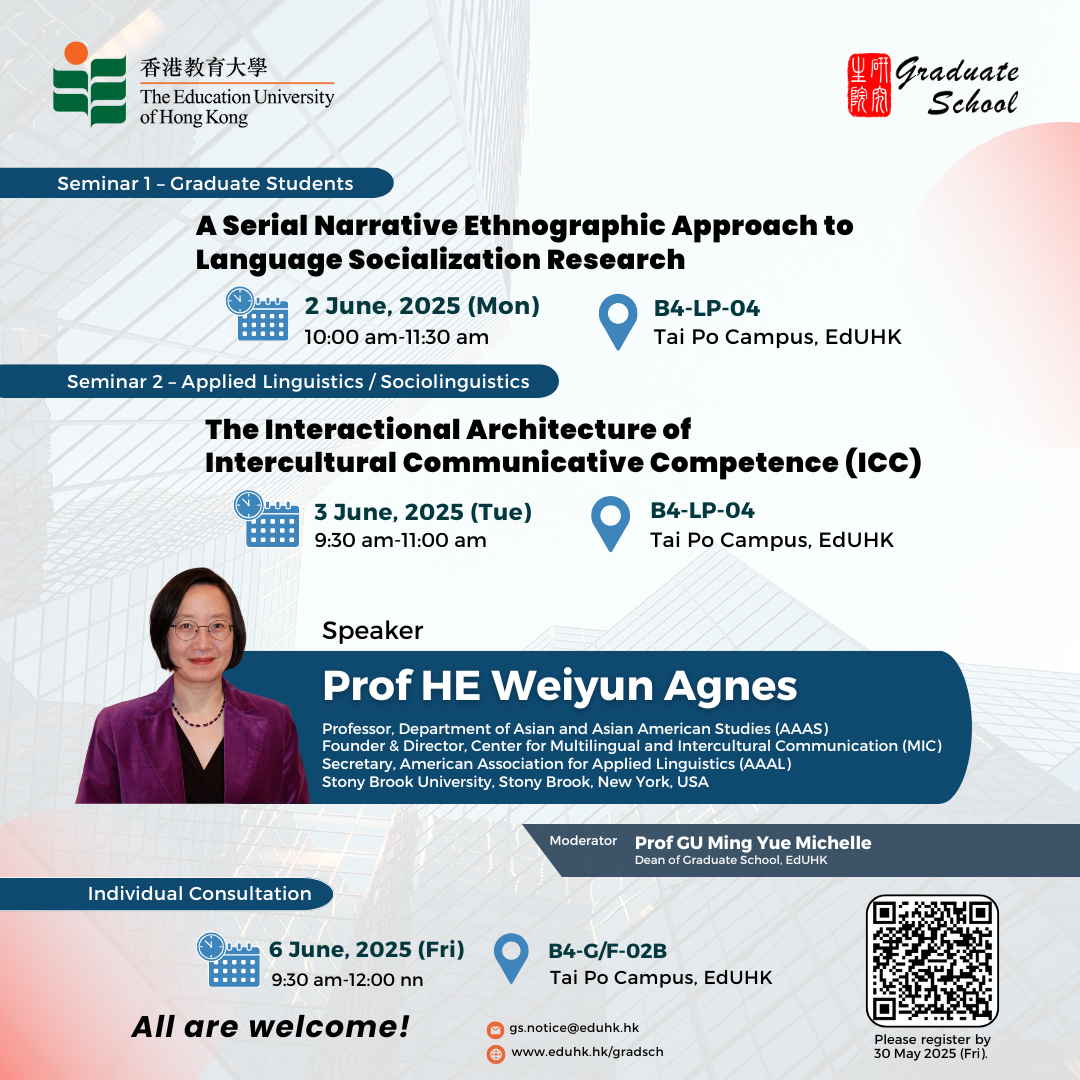 [2-3 June & 6 June] Two Seminars and Consultations (Professor He Weiyun Agnes)