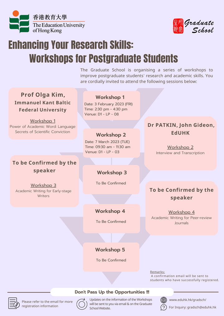 [Call for Registration] Enhancing Your Research Skills: Workshops for Postgraduate Students (Workshop 4&5)