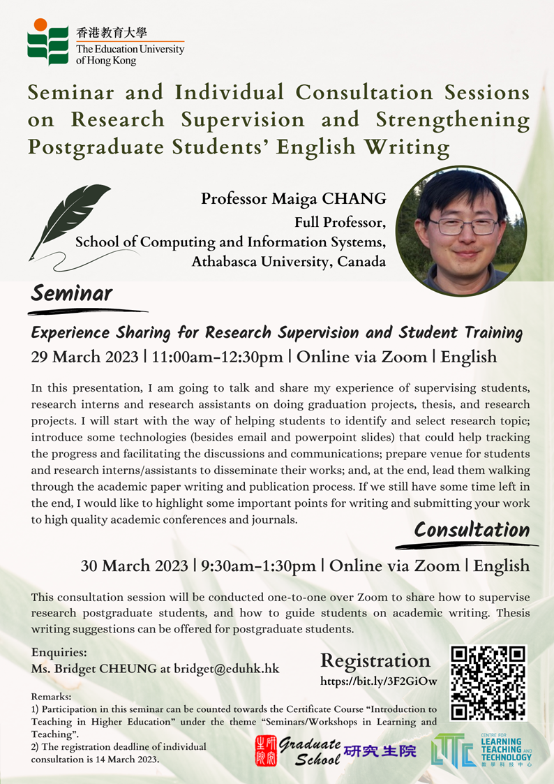 [29 Mar] Seminar on Research Supervision and Strengthening Postgraduate Students’ English Writing
