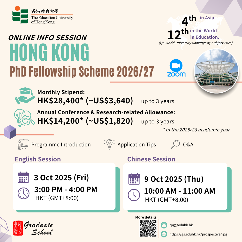 Info Session for the Hong Kong PhD Fellowship Scheme (HKPFS)@EdUHK