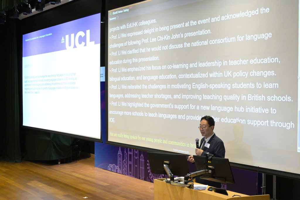The conference featured keynote addresses from six world-leading scholars, including: Professor Li Wei, Professor Zhu Hua & Professor John O’Regan from UCL-IOE; Professor Agnes He from Stony Brook University; EdUHK President Professor John Lee and Dean of GS Professor Michelle Gu. Topics ranged from AI, intercultural communication, language education to digital practices.