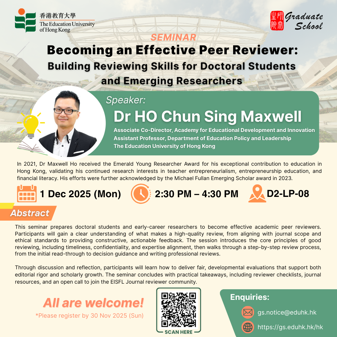 [1 Dec Seminar] Becoming an Effective Peer Reviewer: Building Reviewing Skills for Doctoral Students and Emerging Researchers
