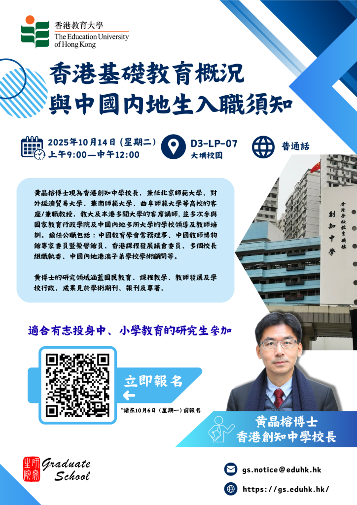 [10月14日] 誠邀你參加「香港基礎教育概況與中國内地生入職須知」講座!