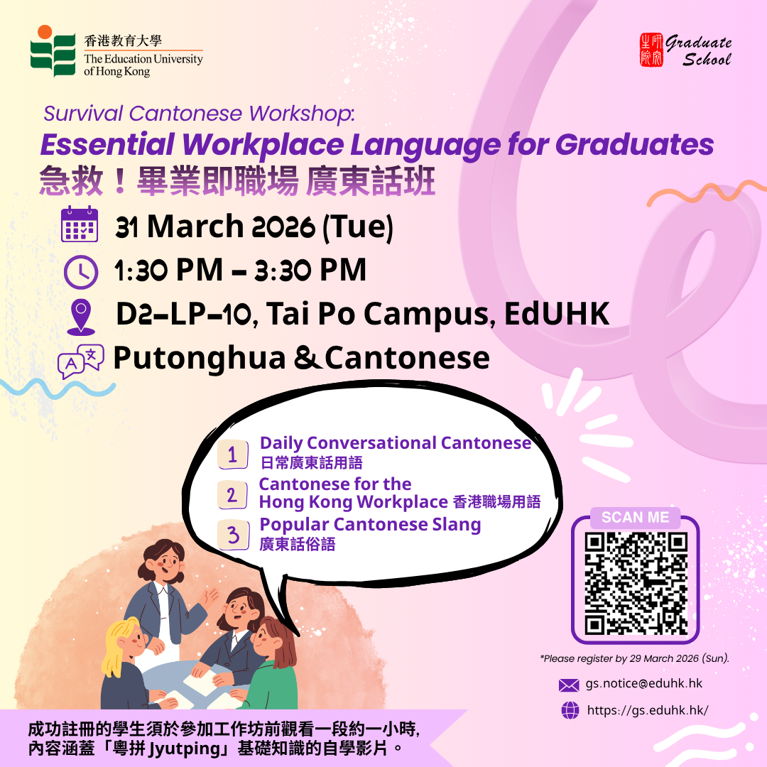 [3月31日] 誠邀你參加「急救!畢業即職場 廣東話班」!Invitation to the “Survival Cantonese Workshop: Essential Workplace Language for Graduates”!