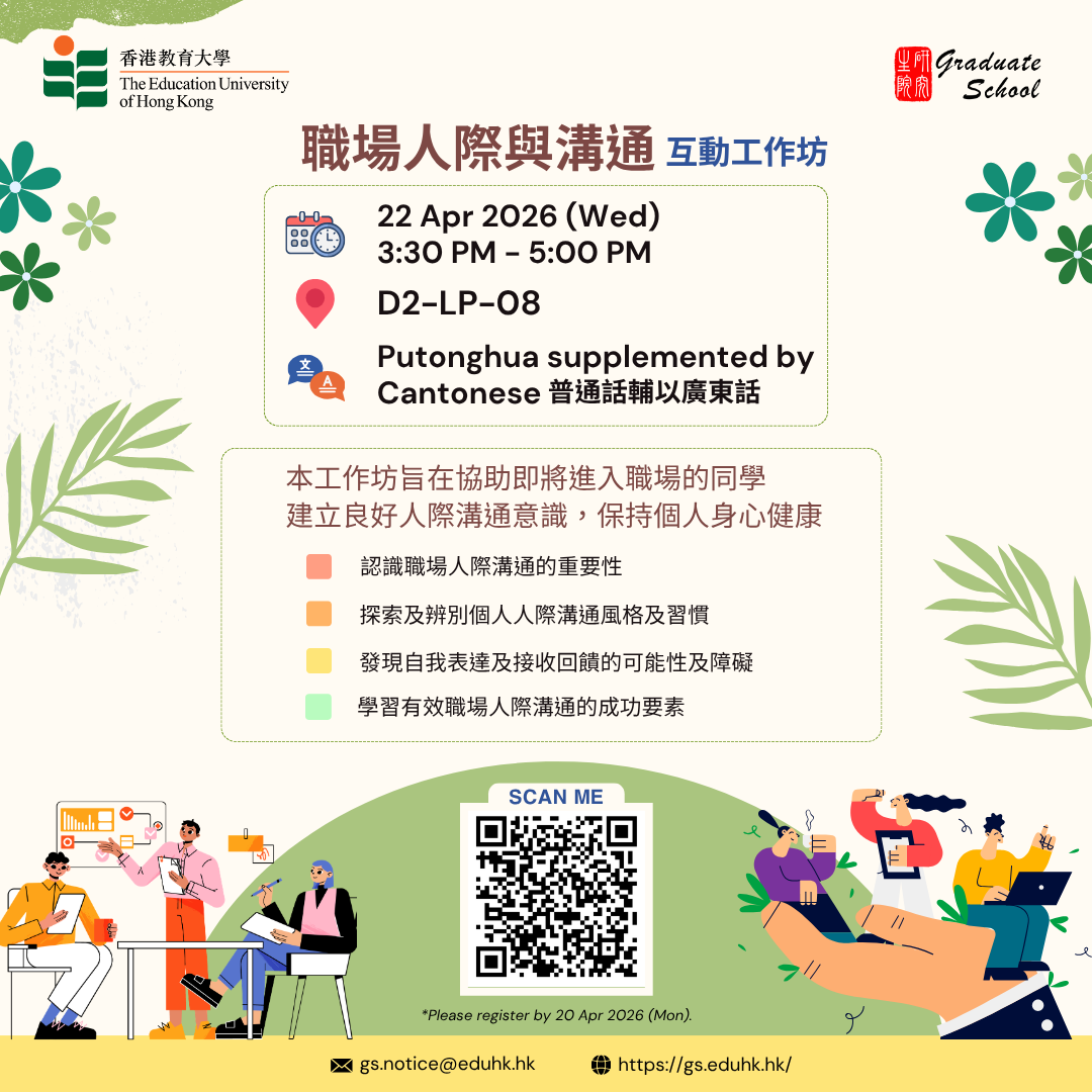 [22 Apr] 誠邀你參加「職場人際與溝通互動工作坊」!Invitation to the “Workplace Interpersonal Relationships and Communication Interaction Workshop”!