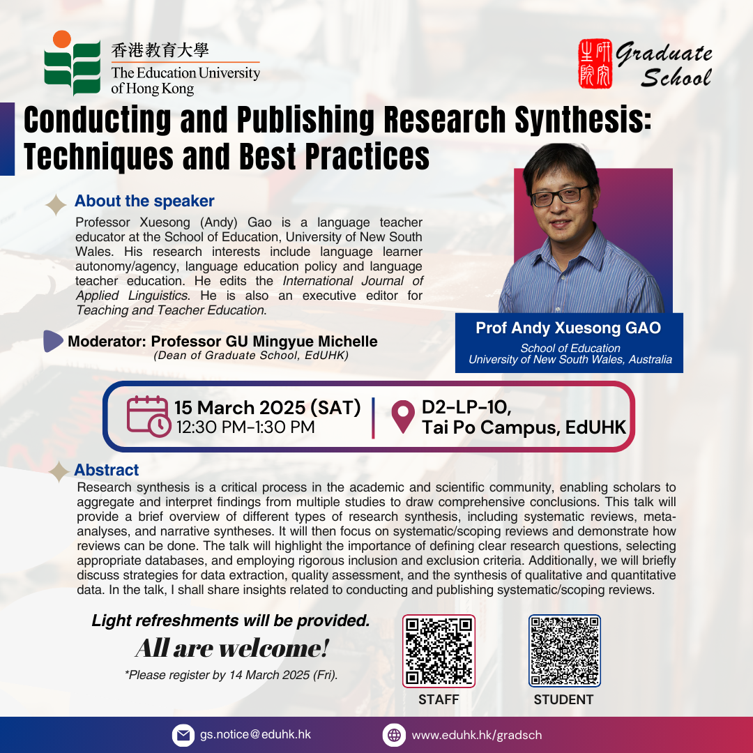[15 March Seminar] Conducting and Publishing Research Synthesis: Techniques and Best Practices