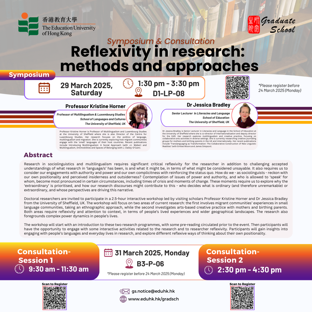 [29 Mar Symposium and 31 Mar Consultations] Reflexivity in Research: Methods and Approaches