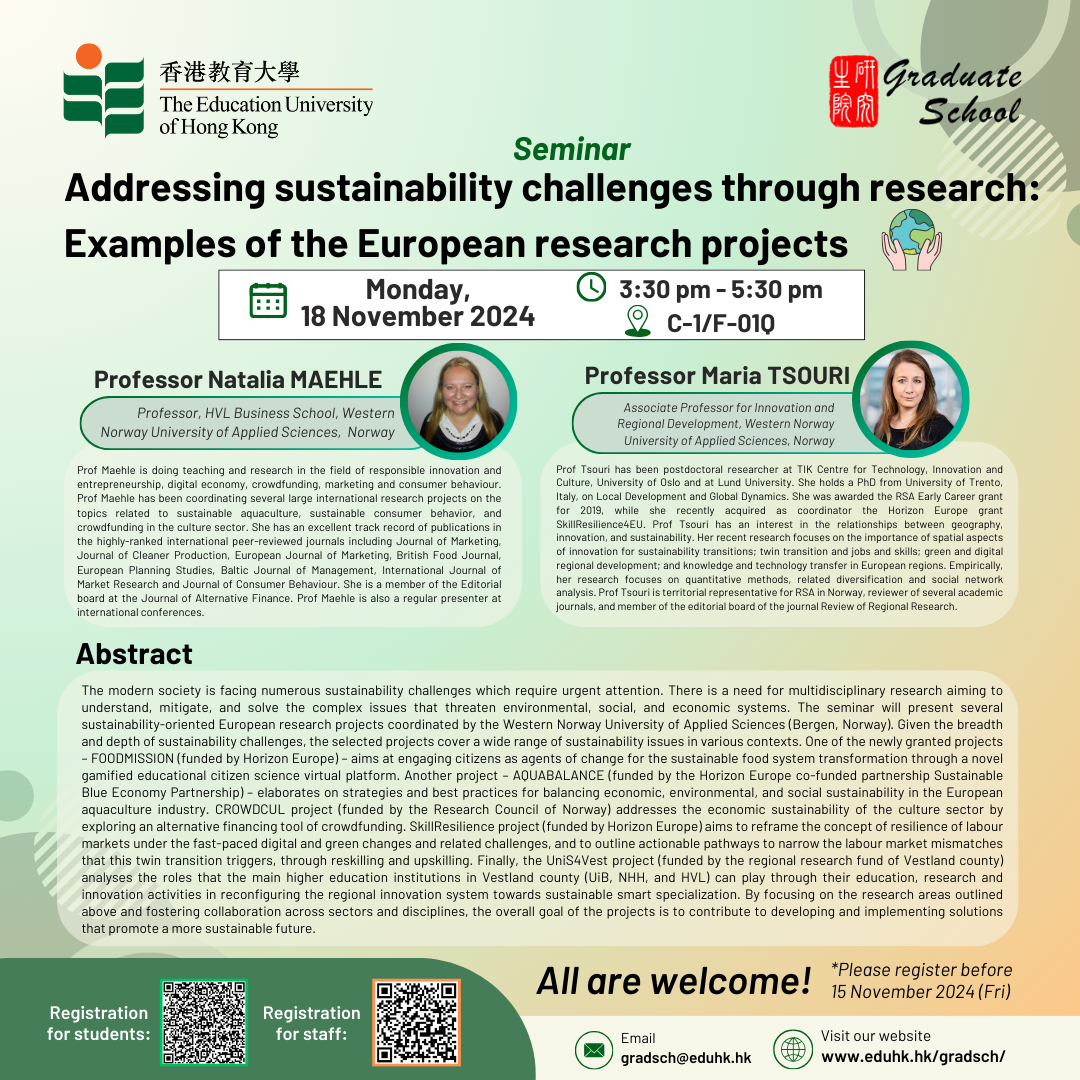 [18 Nov] Seminar: Addressing sustainability challenges through research: Examples of the European research projects