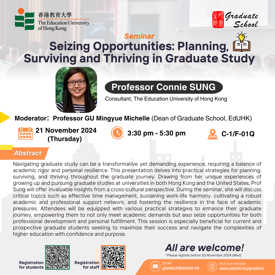 [21 Nov] Seminar: Seizing Opportunities: Planning, Surviving and Thriving in Graduate Study