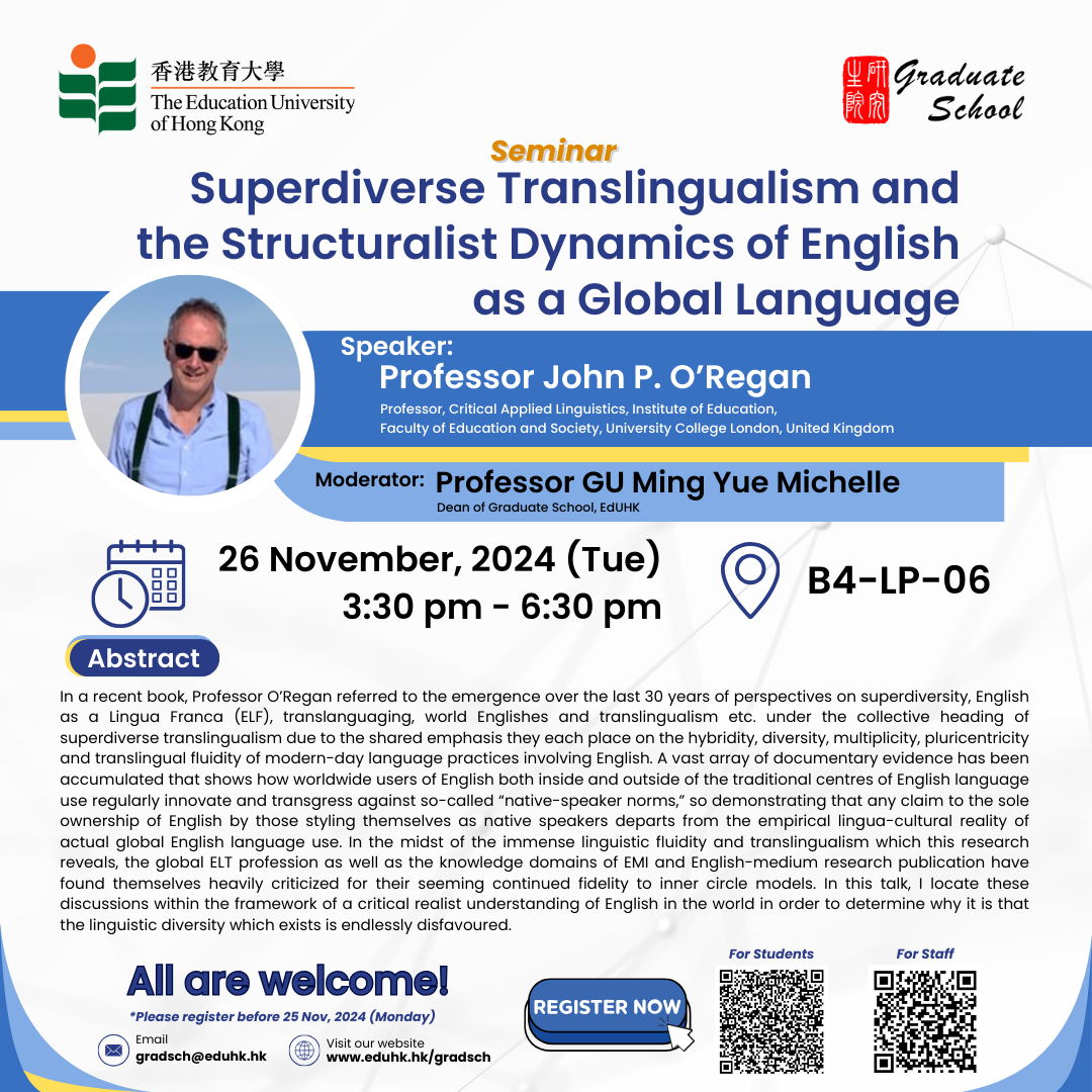 [26 Nov] Seminar: Superdiverse Translingualism and the Structuralist Dynamics of English as a Global Language