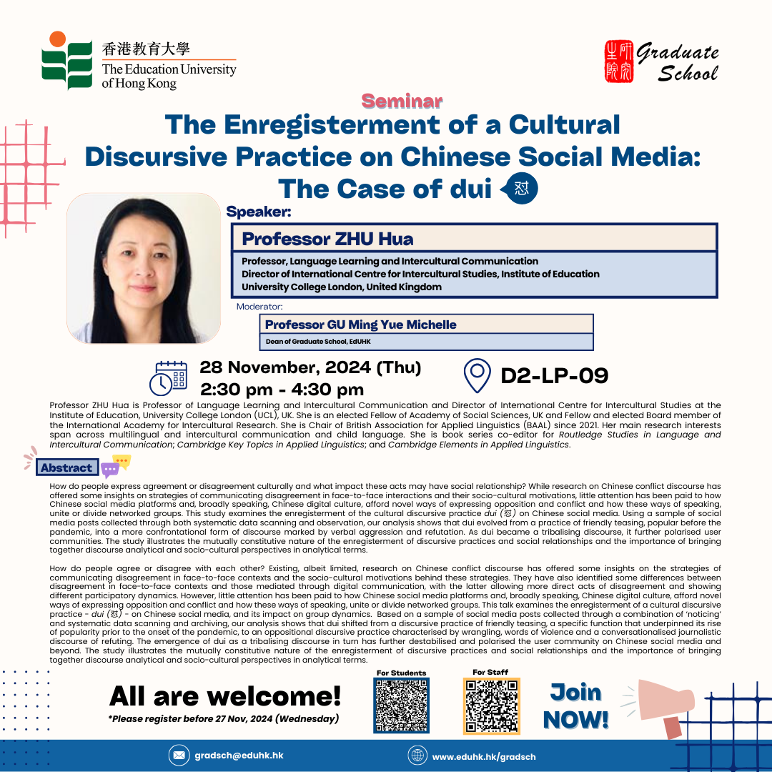 [28 Nov] Seminar: The Enregisterment of a Cultural Discursive Practice on Chinese Social Media: The Case of dui (怼)
