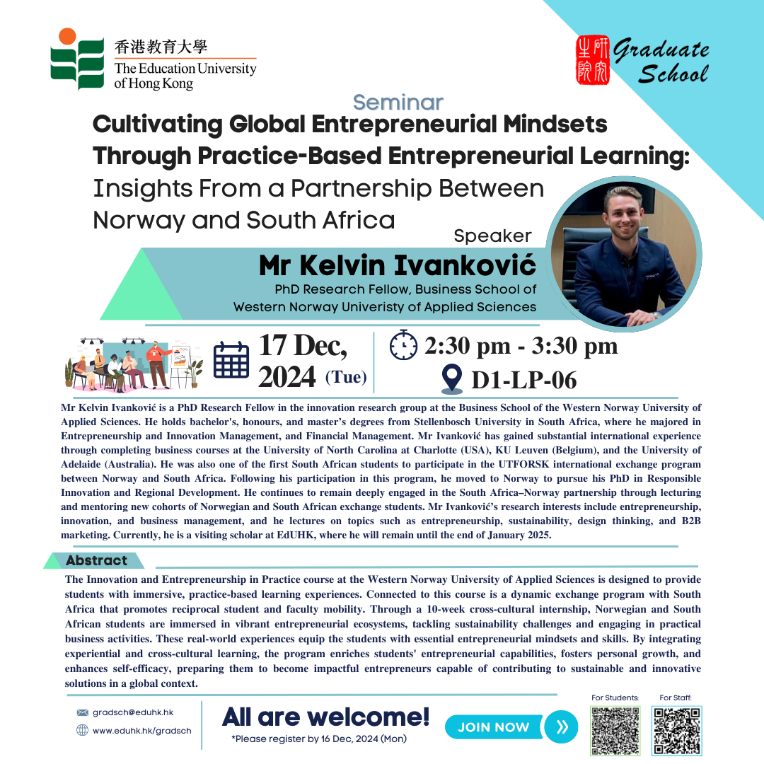 [17 Dec] Seminar: Cultivating Global Entrepreneurial Mindsets Through Practice-Based Entrepreneurial Learning: Insights From a Partnership Between Norway and South Africa