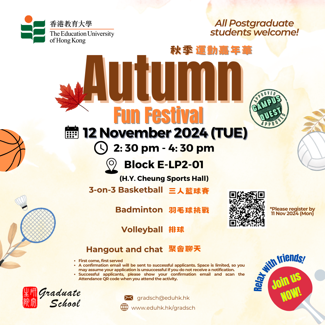 [12 Nov] Join us for the Autumn Fun Festival 秋季運動嘉年華