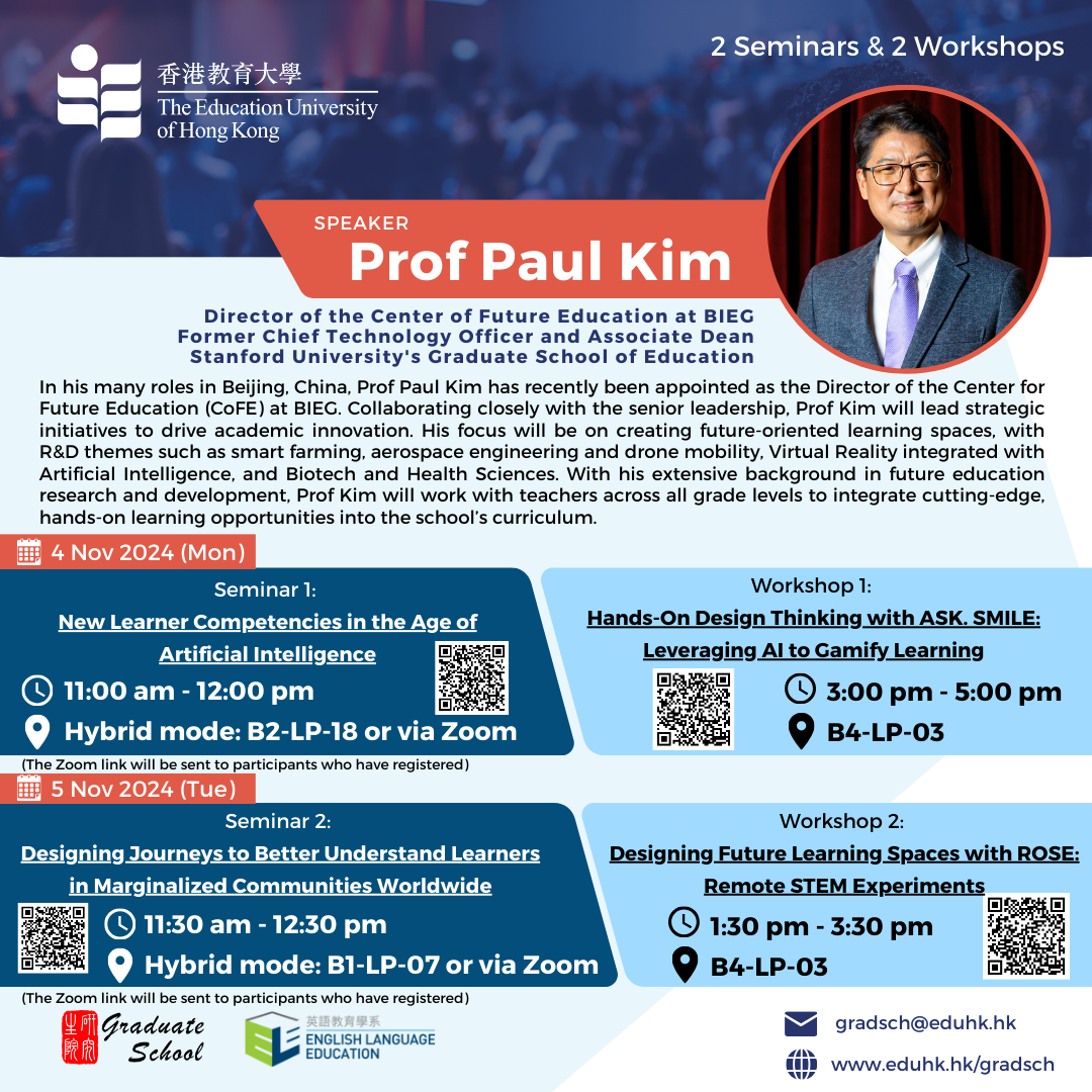 [4 Nov & 5 Nov] Two Seminars and Two Workshops (Professor Paul Kim)