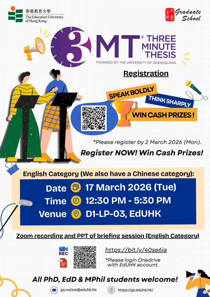 [Participating in the EdUHK 3MT® Competition 2026] Share Your Research in 3 Minutes & Win Cash Prizes! (English Category)
