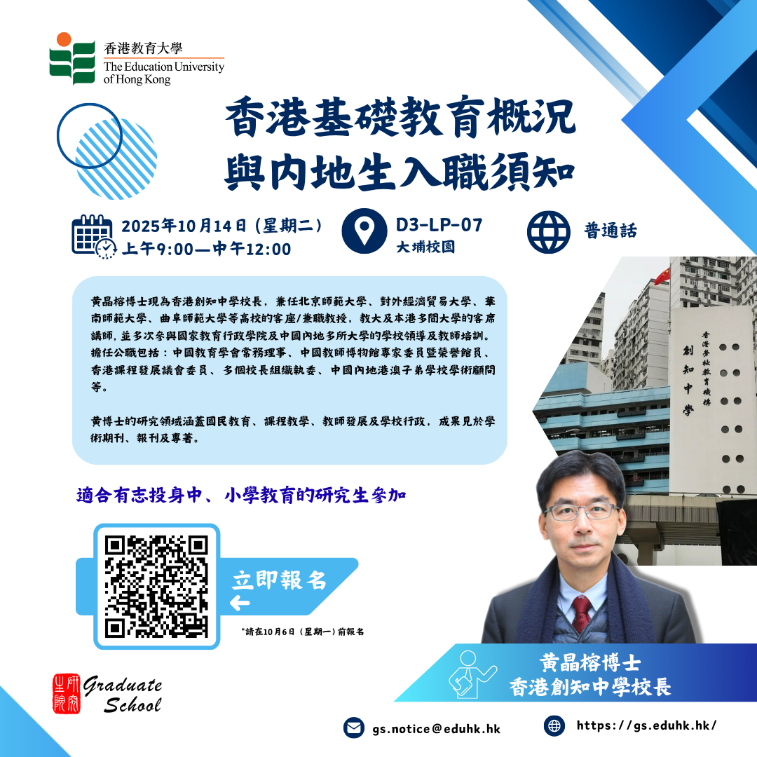 [10月14日] 誠邀你參加「香港基礎教育概況與内地生入職須知」講座!