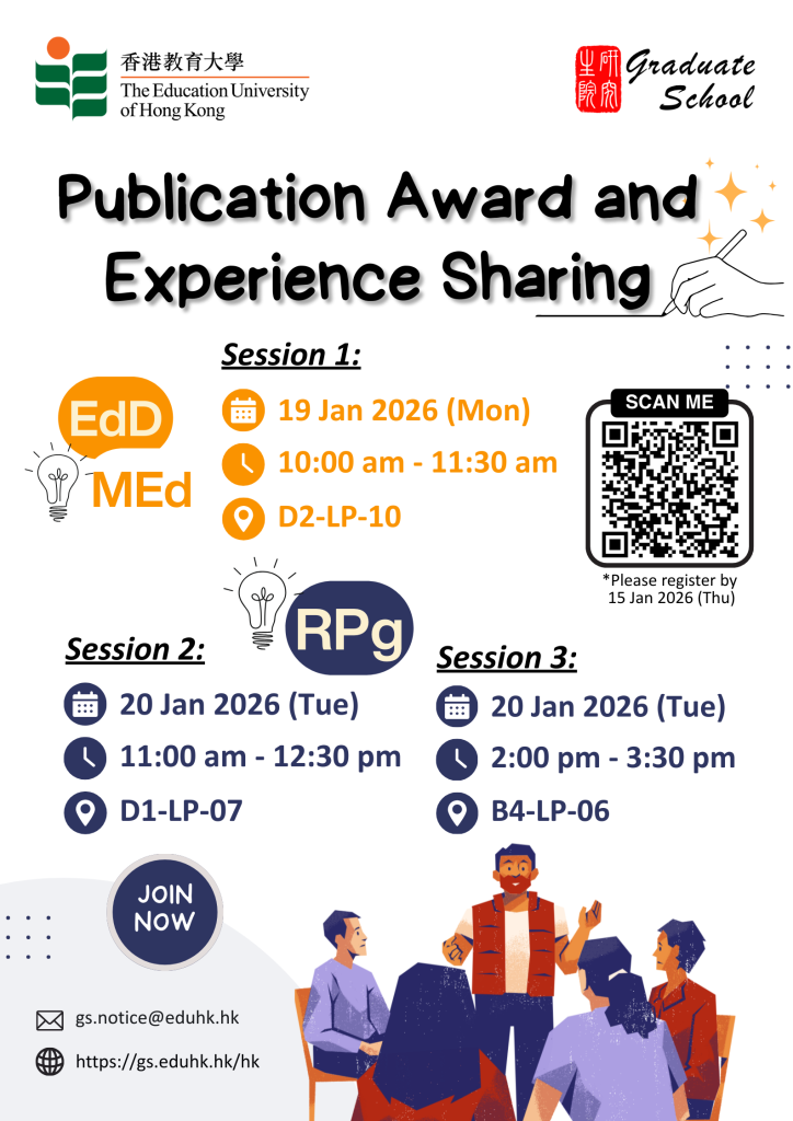 The sharing session of Research & Publication Experience will be held on 19-20 January 2026 for postgraduate students. More than 50 awardees will share their unique research findings and publication experiences! You are cordially invited to join the event to mingle with fellow students and exchange research ideas.