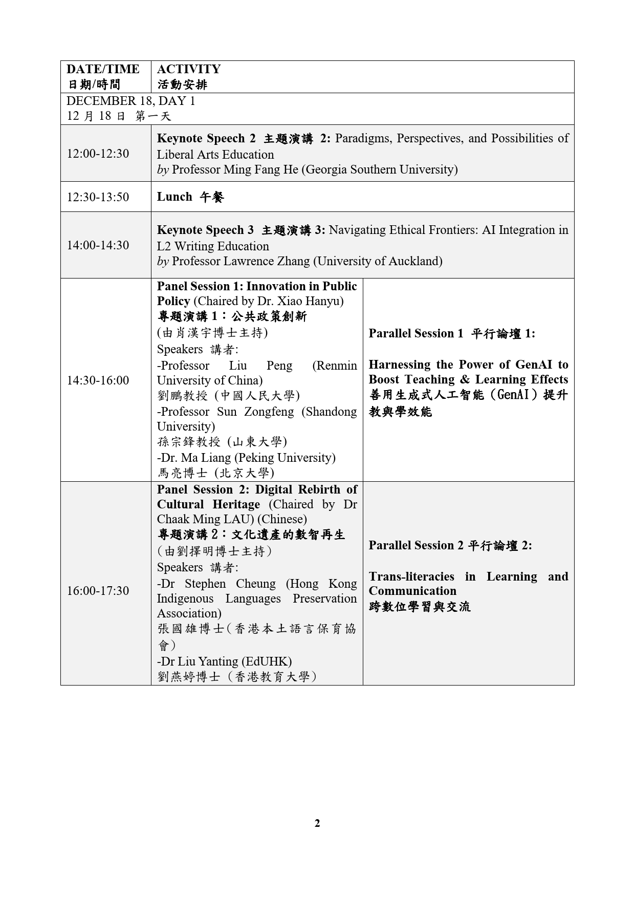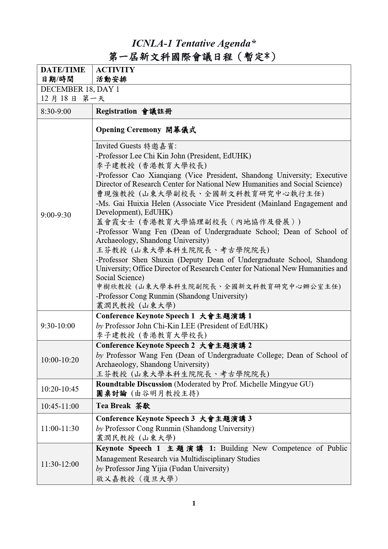 第一届新文科国际会议 The 1st International Conference on New Liberal Arts (ICNLA-1)-会议日程